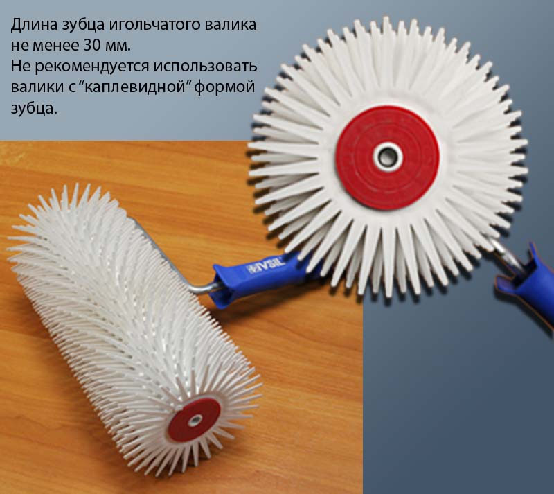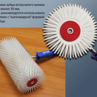 If the needles are too short, the body of the roller will come into contact with the surface, create tension and dislodge the solution. As a result, there will be irregularities. Long spikes picked up incorrectly will create more bubbles and splash the mixture. It is important to choose the length of the needles for the height of the floor. For mixtures of gypsum or cement, bending drywall will require a roller with a maximum length of needles. For finishing coatings up to 5 millimeters thick, it is recommended to buy rollers with the thinnest needles.