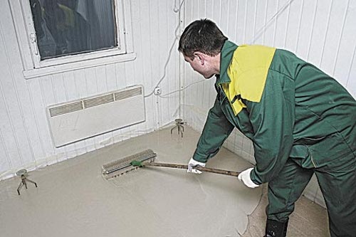 To eliminate voids, it is necessary to roll the roller intensively on the surface of the screed, which is already distributed over the floor.