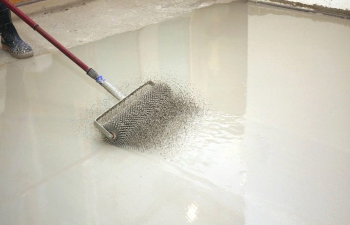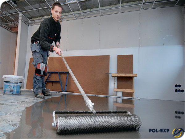 It is advisable to treat the floor in this way at least three times. Such pumping reduces the porosity of the mixture, prevents its deformation,what is especially important for rooms in which it is supposed to place industrial machines, massive objects and furniture on a floor. After the work is recommended to thoroughly clean the roller from dirt and dry.