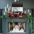 The white fireplace will sparkle with new colors, if you place bouquets of roses on its shelf, alternating them with bright greens.An interesting element of the decor are panels with inscriptions, names and photographs of the heroes of the occasion.