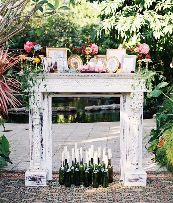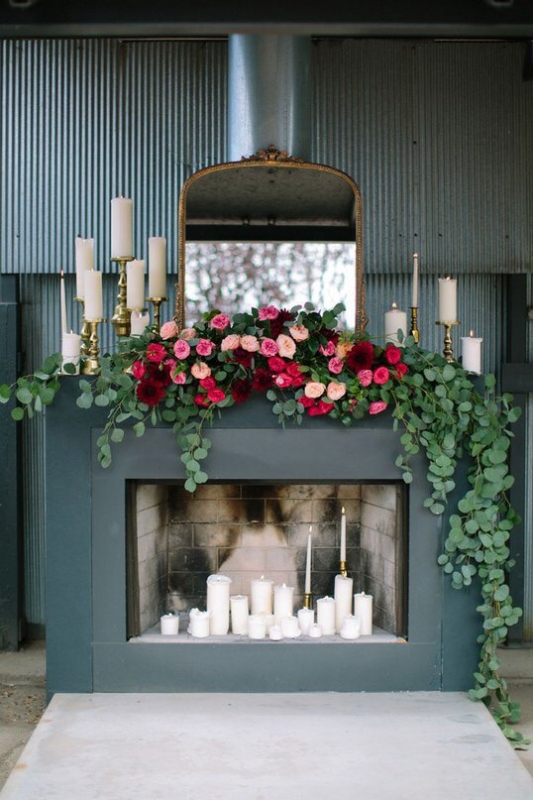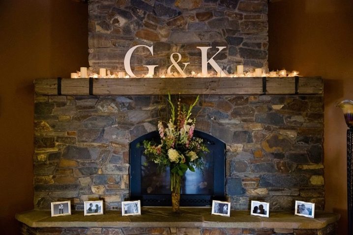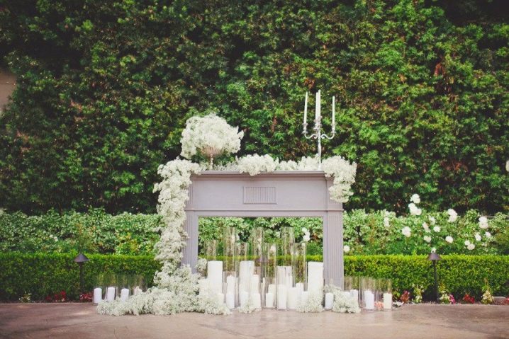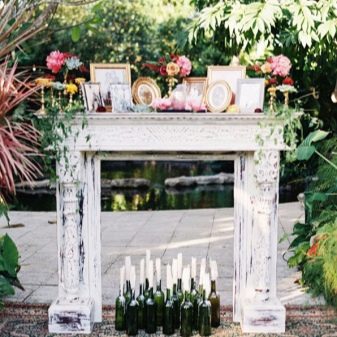 Wedding - a solemn event. Flowers, candles, attributes of white color - all this will give comfort and will look great. Delicate white flowers and a garland of paper hearts will look great against the backdrop of a large stone fireplace.