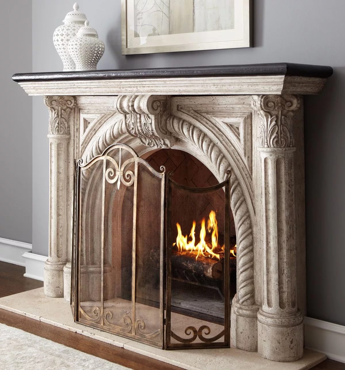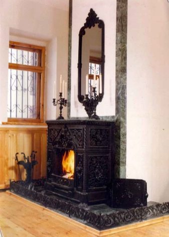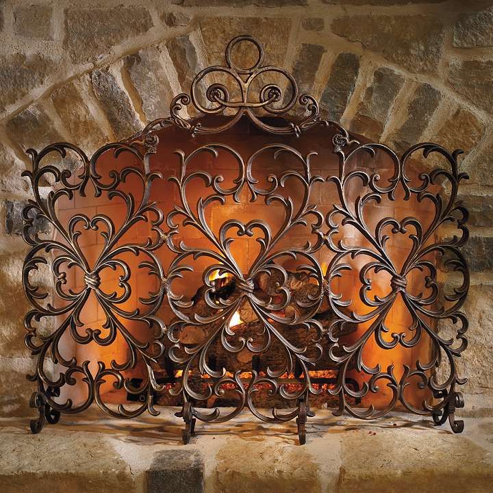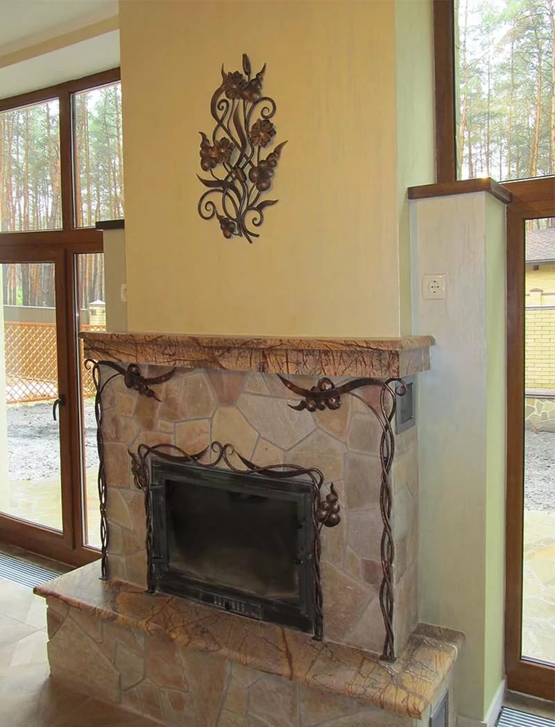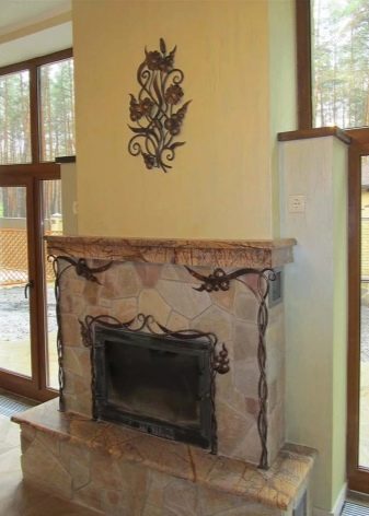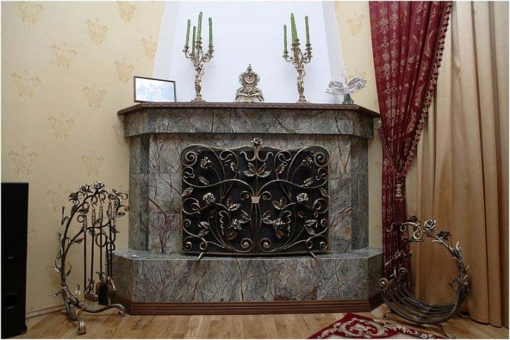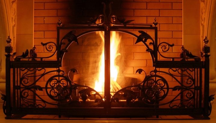 The grill can give the fireplace a special look. Imitation coat of arms makes it, as if descended from medieval paintings. And the floral pattern, on the contrary, gives lightness and grace.