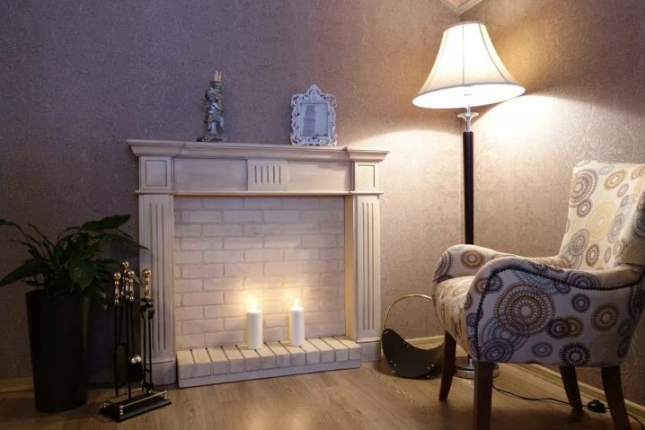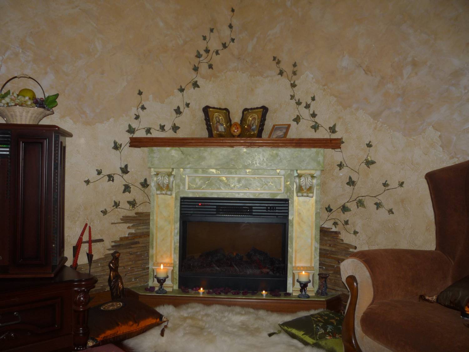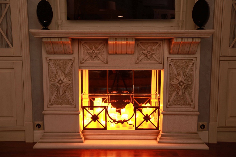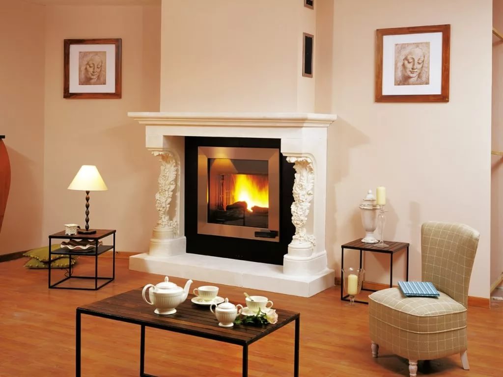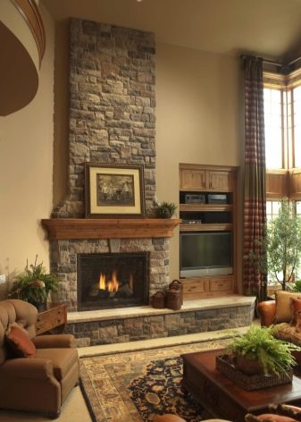 In order for the fireplace not to become a ridiculous stain, but to blend in harmoniously with the interior, it is necessary that it correspond to the general style of the room. For example, the Artificially aged vintage fireplace is ideal for a classic style.