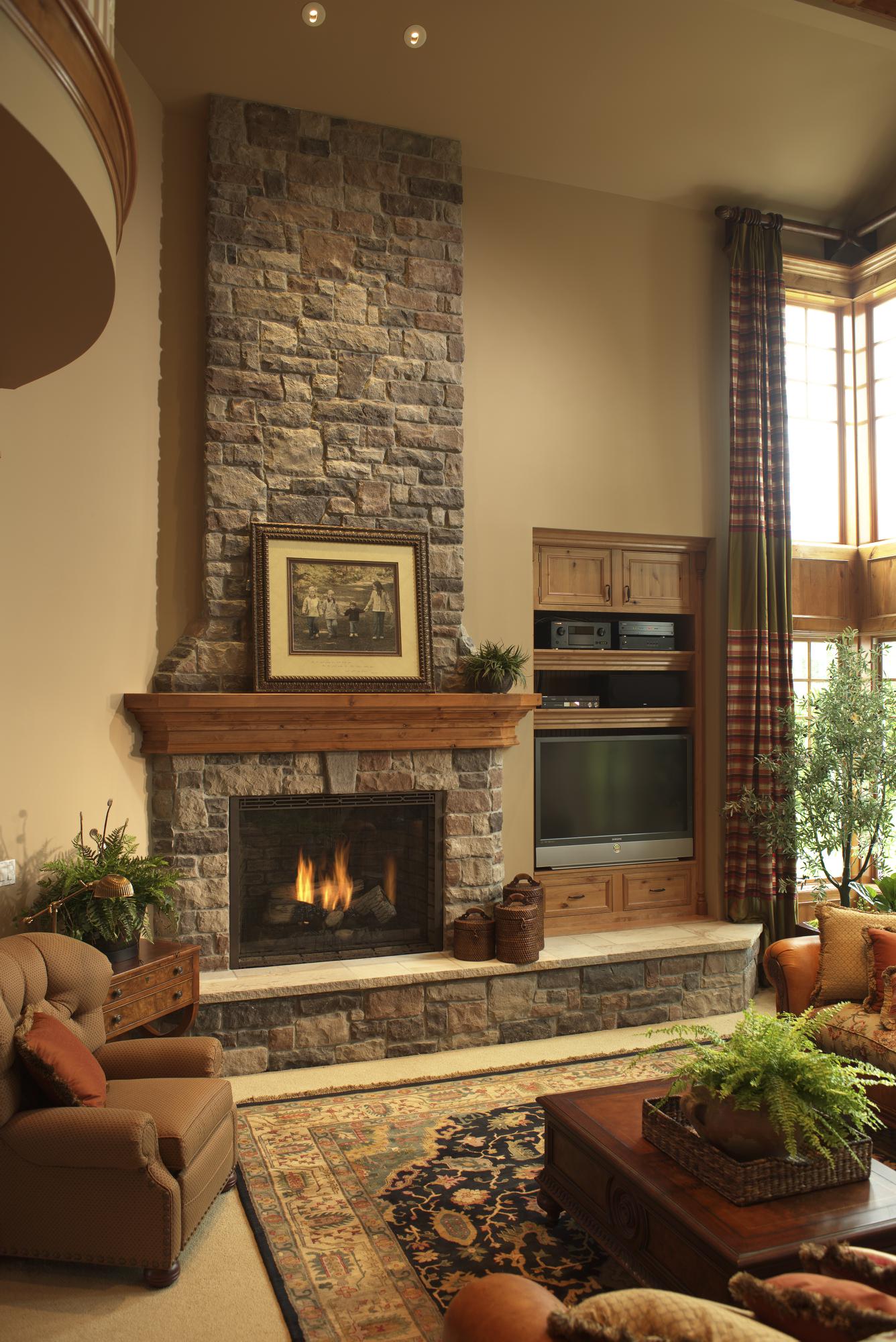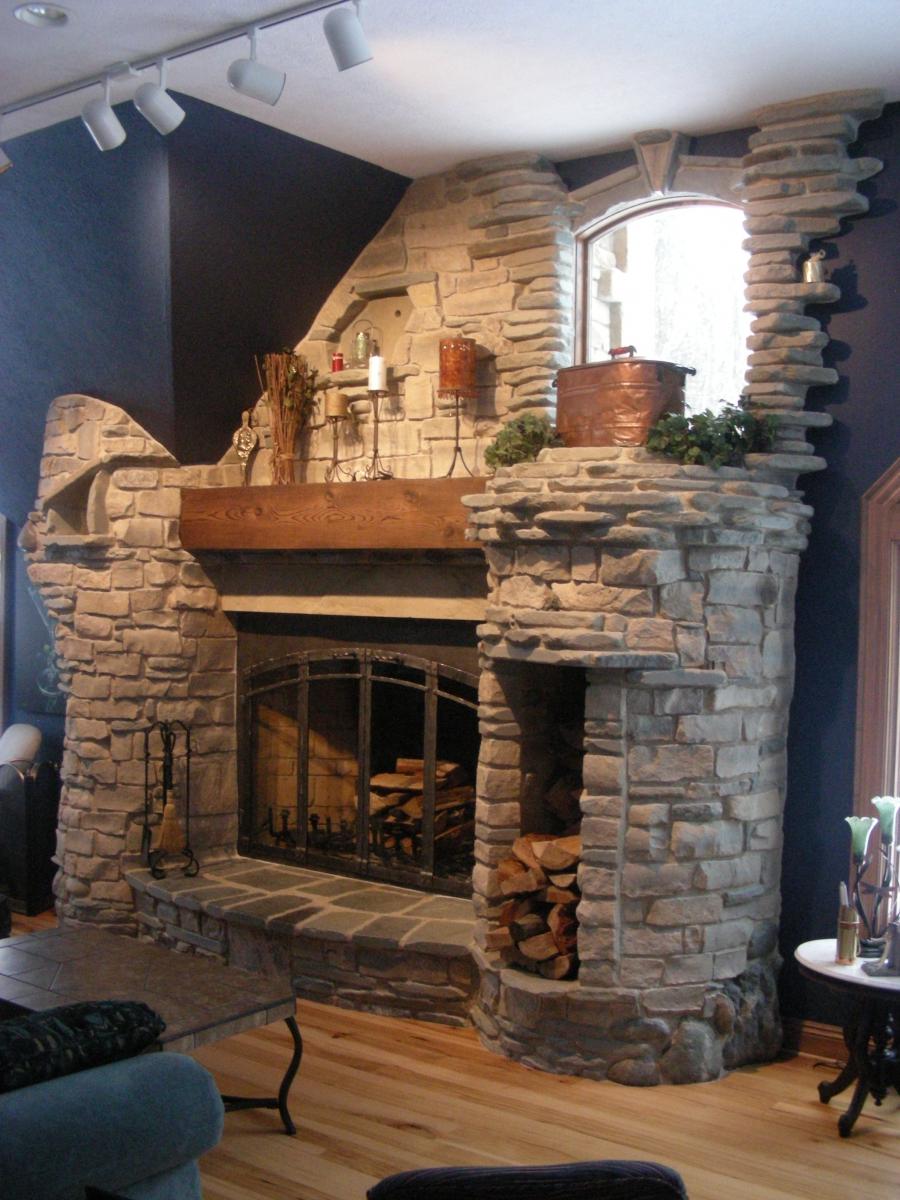 The walls adjacent to the fireplace can be decorated with family photos, mirrors, various shelves and niches with souvenirs or books.