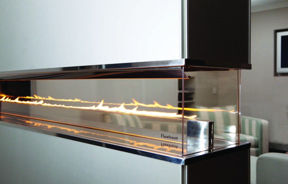 Glass. The fire-resistant element of the decor, which also performs the safety function, is glass. It is placed on the doors or the fireplace is fully constructed from heat-resistant glass.