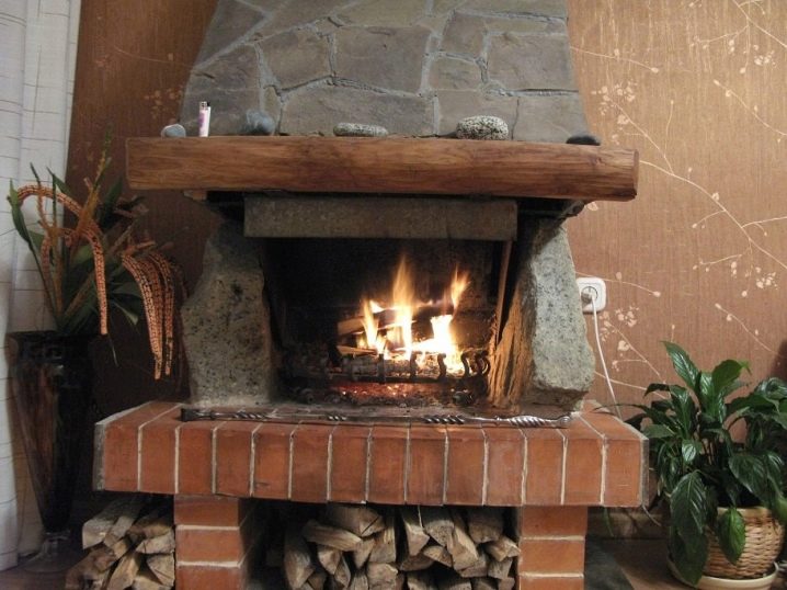 Flowers and plants are an indispensable tool to bring softness to the interior. If the fireplace is made of stone, living plants will add smooth lines, and it will not look so rough and cumbersome.