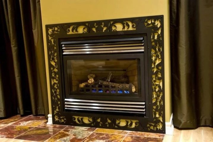 The ventilation grilles in the fireplace improve the air circulation in the box. But in order for a much-needed element to have an aesthetic appearance, it is also decorated with various patterns and ornaments.