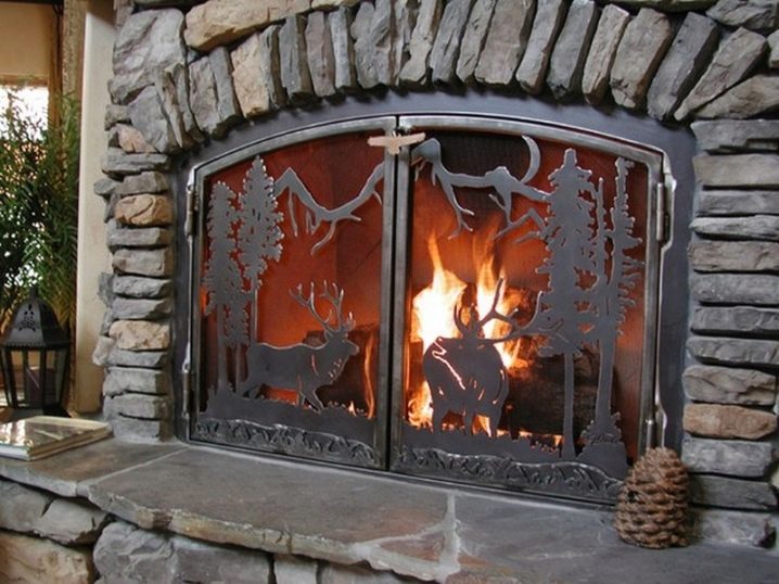 Glass has several advantages: it allows you to observe the flame without harming your health and the interior, as it prevents smoke, sparks, accidentally fired coals from entering the room. In addition, manufacturers offer a wide selection of this material from simple options to interesting and unusual - tinted, embossed, with patterns.