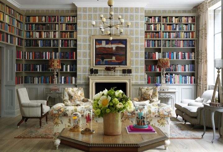 If this is an office with massive wooden furniture and shelves for books from floor to ceiling, then the center should look accordingly massive.A small hearth there simply will not be noticeable and there will be little sense from it.