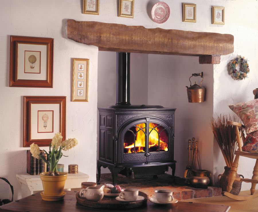 You can choose any design of a fireplace stove, it all depends on the overall design of the room. The glass door can also be an additional decoration, but do not forget about its functionality and security. Standardly the door consists of a metal frame and a door with a double-glazed window connected by hinges and placed between them with a special sealantsealing. Additional elements on the door are: