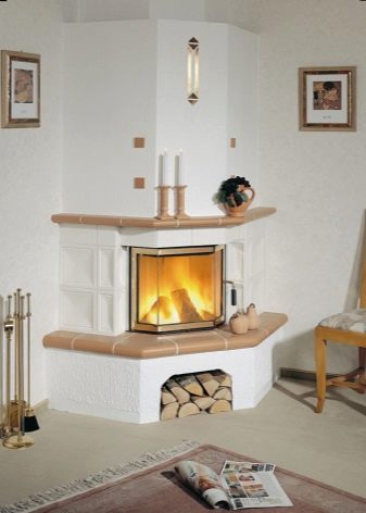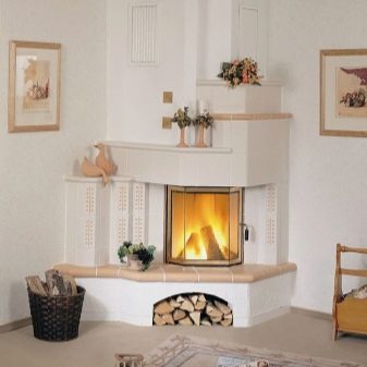 For the base of the fireplace, drywall is most often used; it is decorated with wood, artificial stone, decorative brick or ceramic tile.