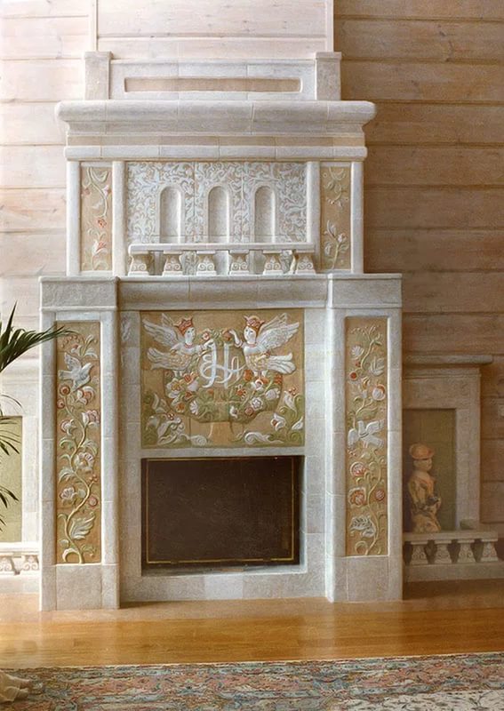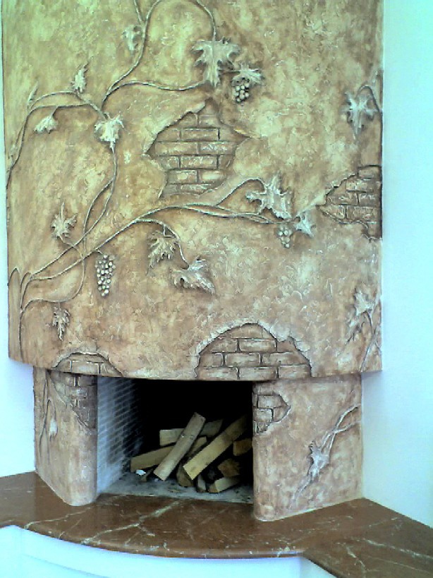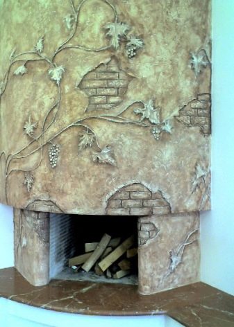 Wanting to create a truly unique fireplace, pay attention to the decoration of the bas-relief. The volumetric surface with a pattern is an exclusive work of designers, because all the finishing is done manually, which means that two absolutely identical fireplaces do not exist.