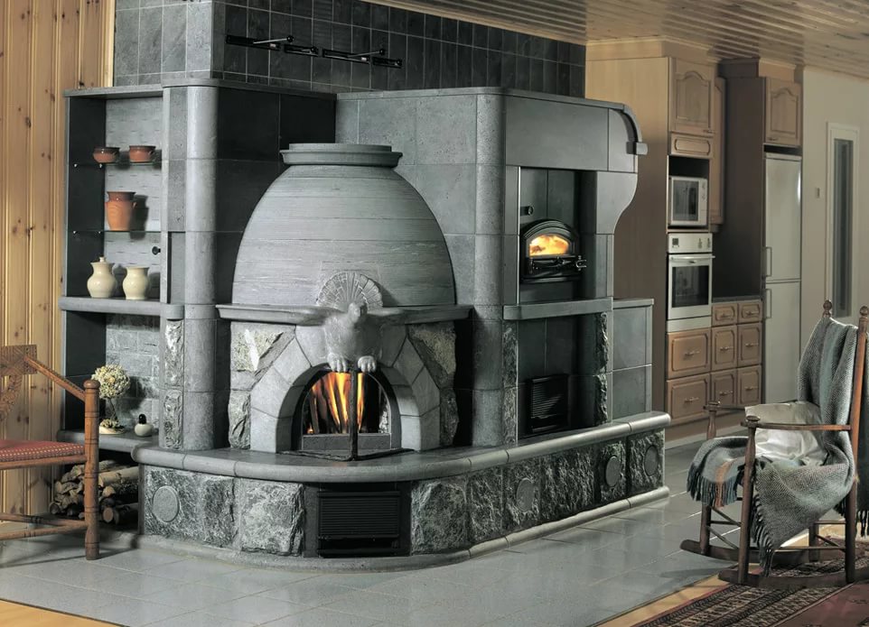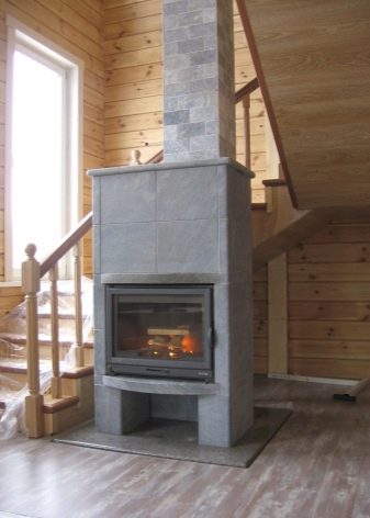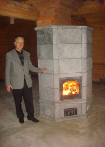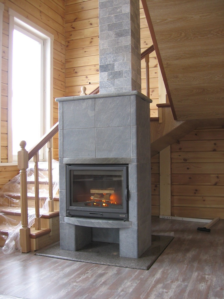 Natural stone, created from volcanic lava, has become an extremely popular material for finishing stoves and fireplaces. And this is caused not only by its luxurious look, but also by its healthy properties. So, being near a real fireplace with a talcotrolite finish improves blood circulation and reduces pressure. And this stone is able to serve up to 30 years, delighting the owner.