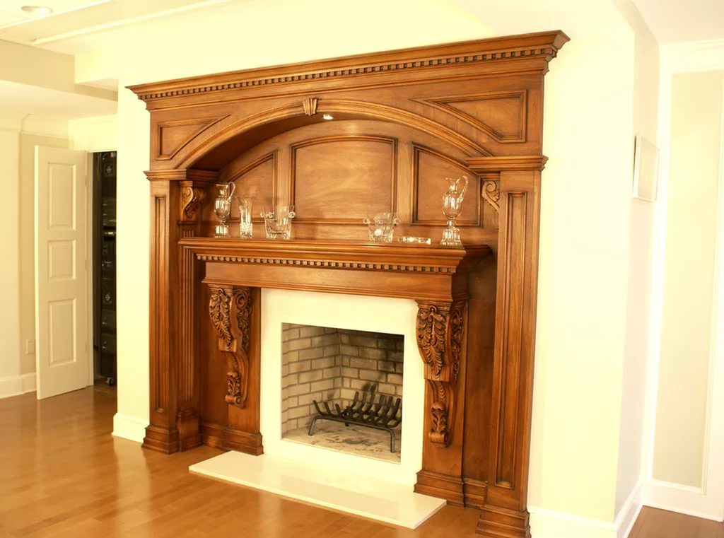And even if the wooden fireplace is in a permanent place of your habitat, it is important to keep an eye on it, and not just wipe dust off with a damp cloth. Certain means for wood processing, periodic surface renewal - a pledge of a beautiful fireplace for many years. Unfortunately, without proper care, the wood quickly darkens, loses its gloss and presentable appearance.