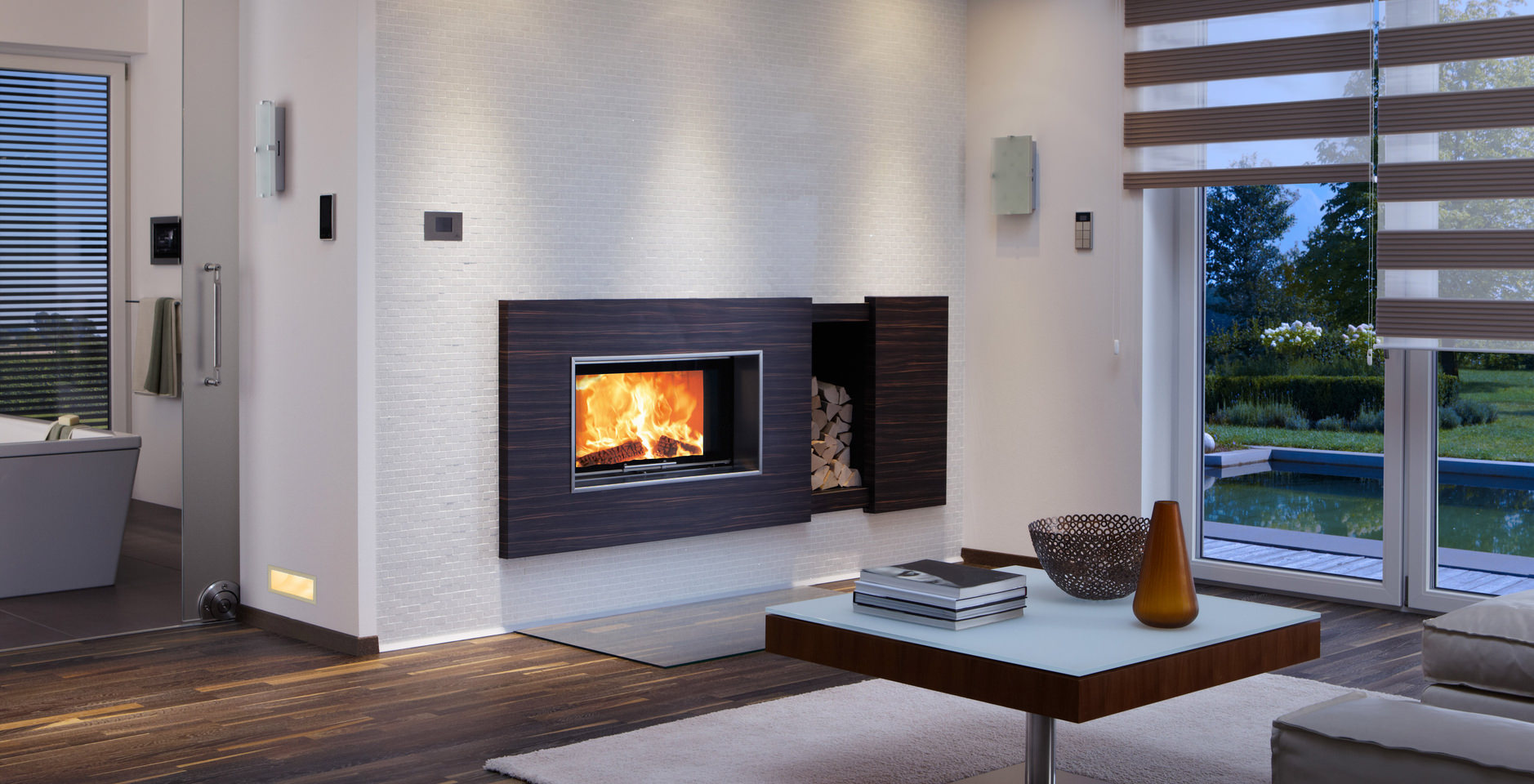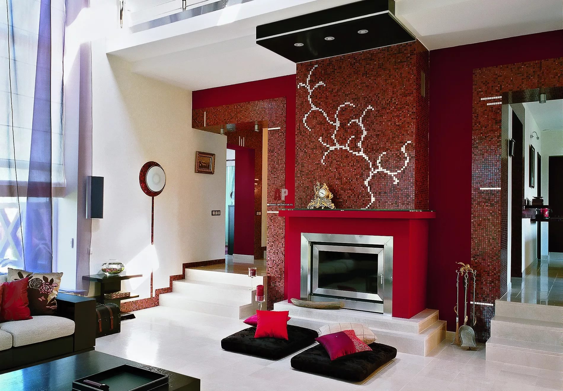 - non-standard materials for finishing: fireproof glass, steel, mirrors, glass-ceramic.