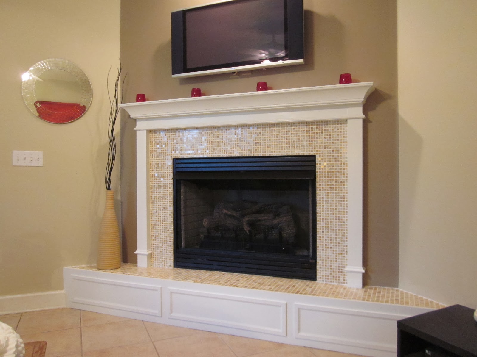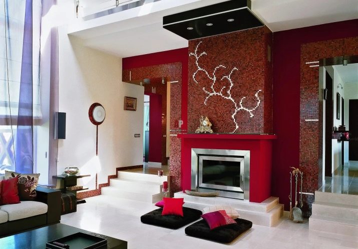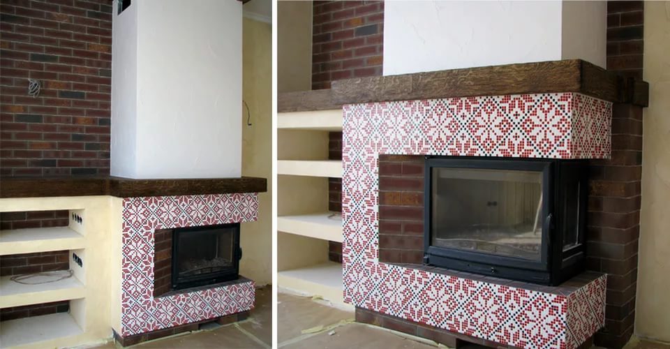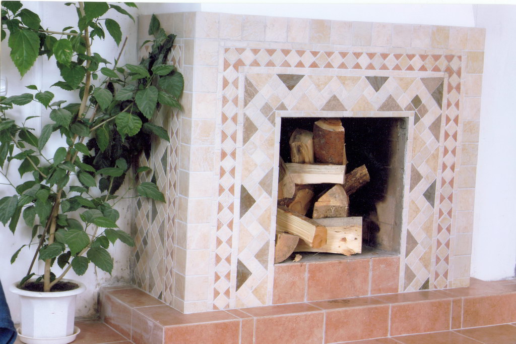 Fireplace with tile trim is an interesting, but rather rare solution. And it's all about the special preparation of the surface for lining, because small mosaic can repeat any unevenness.