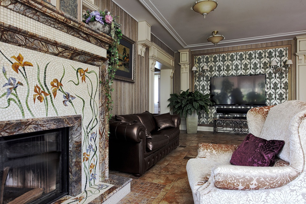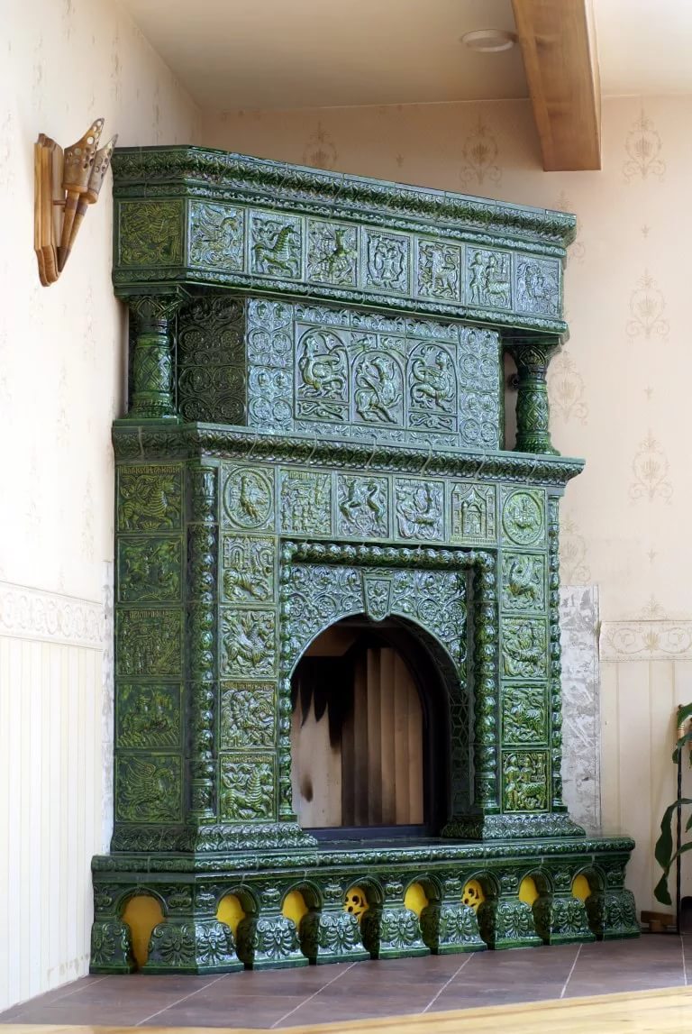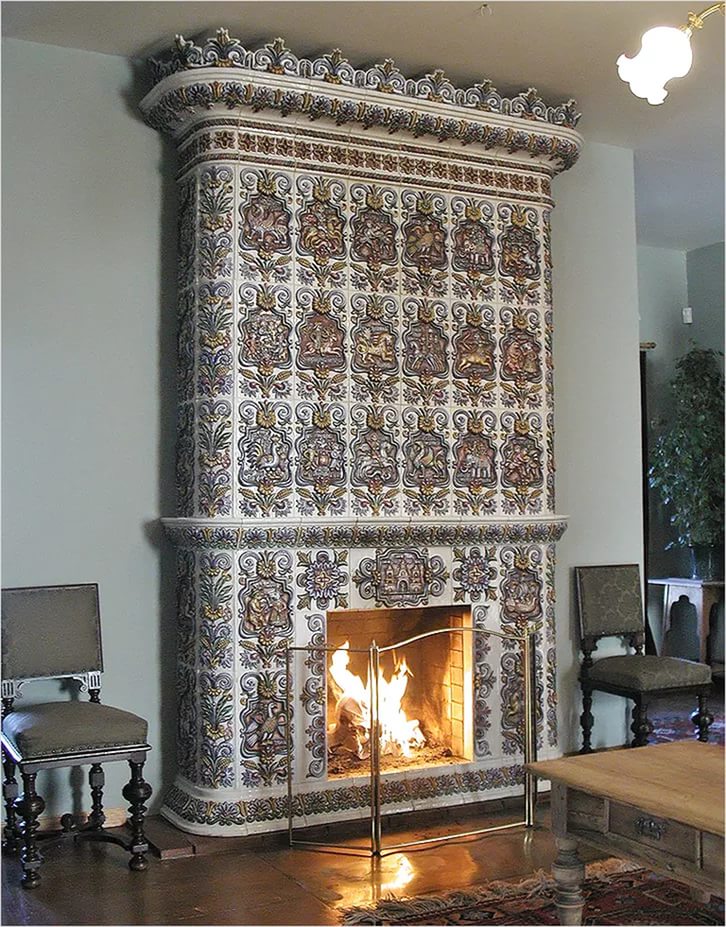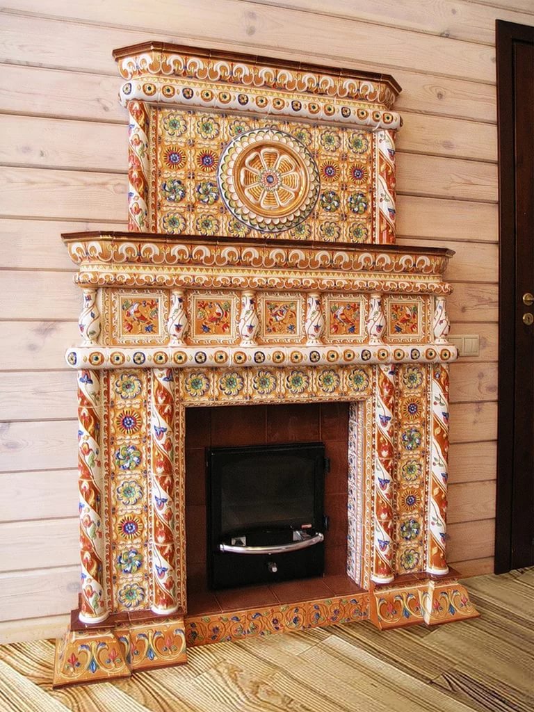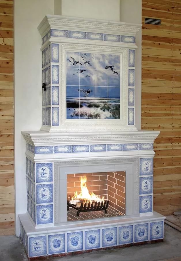 Tiles are admired in classic, modern and vintage styles. The rich painting makes each tile unique, and the fireplace takes on a unique look, becoming the main focus in the interior of the house.