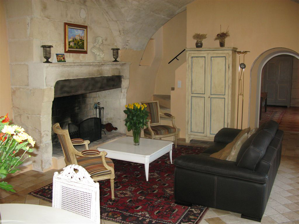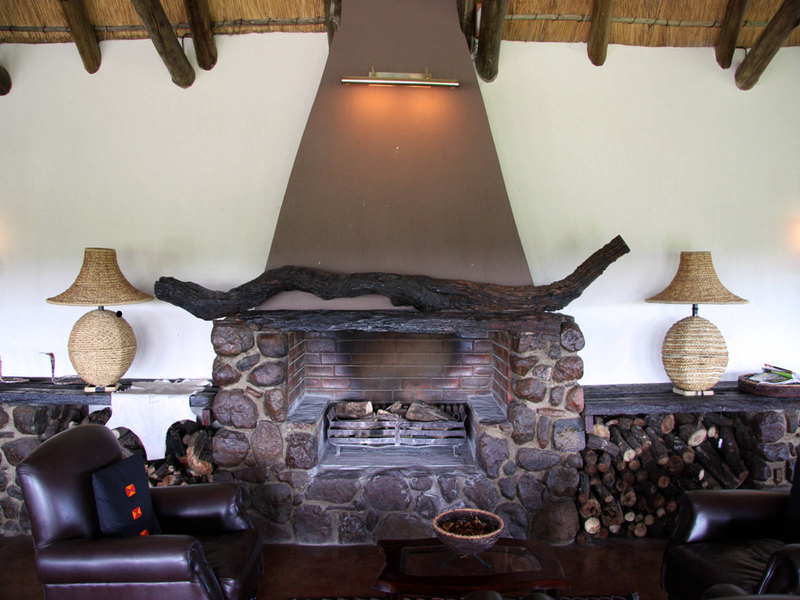 The fireplace in this interior has such characteristics as: