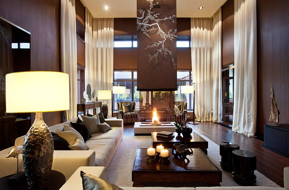 The design of trilateral fireplaces stands in the way of modernity. Here you can see such styles as modern, high tech and country.