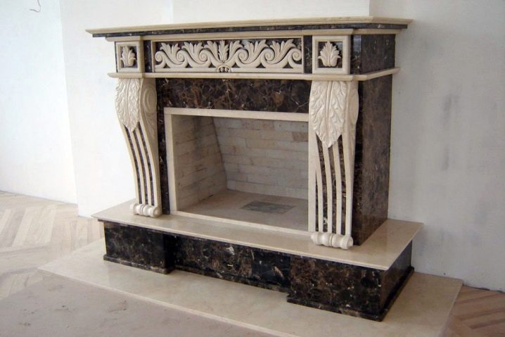 It is worth saying that marble can be used for the construction of the whole fireplace design, and you can add a finished fireplace in the form of cladding. For the first case, a rubble stone is used, for the second - a plate. The thickness of the facing plate is not more than 1 cm.