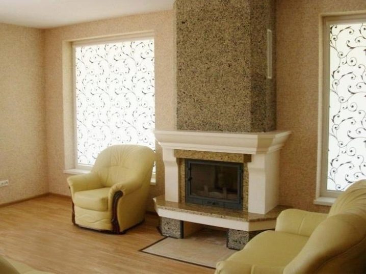 Artificial fireplaces are often decorated with liquid wallpaper, because their design and decoration can be thought out to the smallest detail and updated at any time, in addition, the entire decoration can be made independently. And with the help of liquid wallpaper, you can create almost any surface that imitates natural stone.