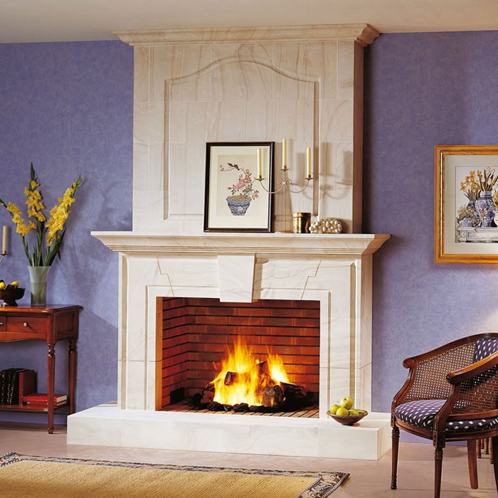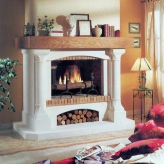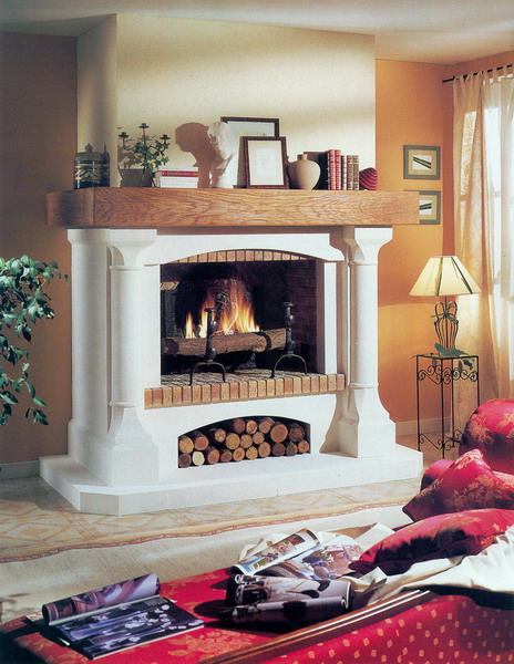 Another version of the fireplace - French. Such a fireplace with an open hearth is assembled from prefabricated blocks and is particularly practical.Such fireplaces are also distinguished by the use of mainly light colors of marble and brick, as well as the presence of specific decorative elements.