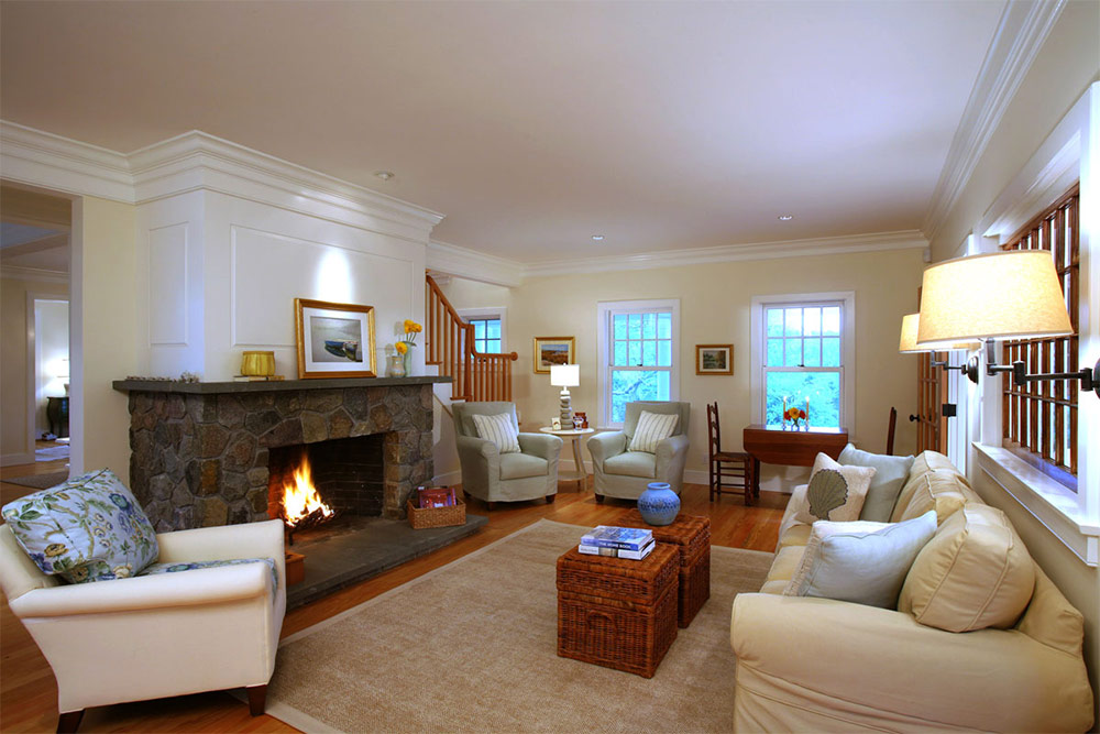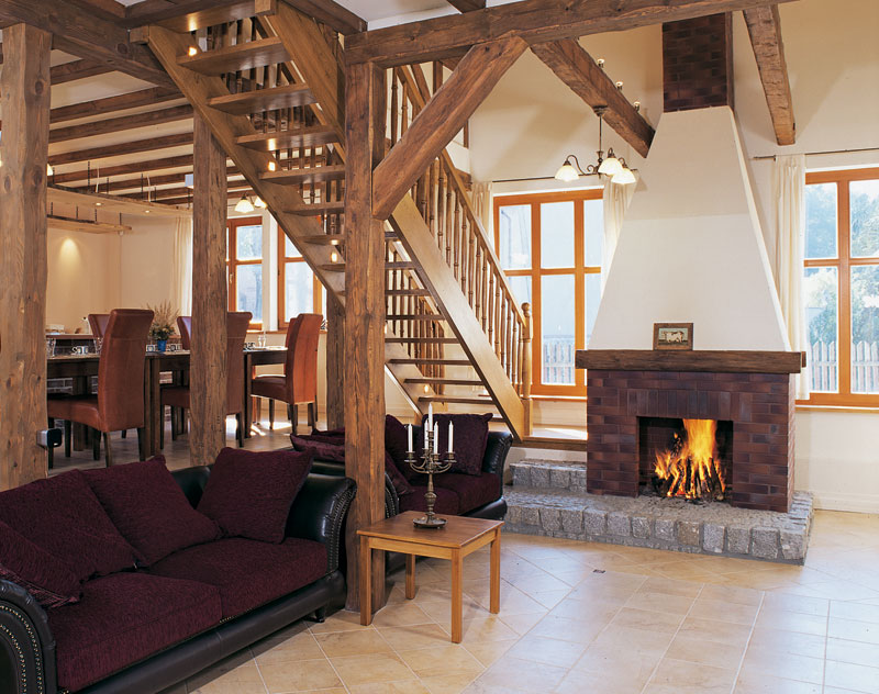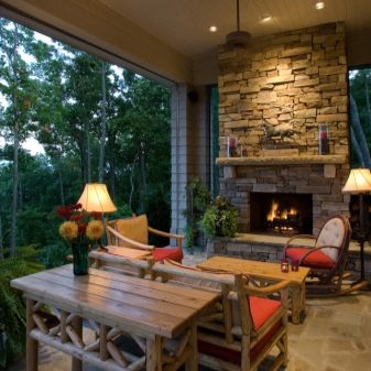 Another popular option is the open fireplace. It looks great in all conditions and adds to the room comfort and a pleasant family atmosphere.