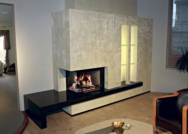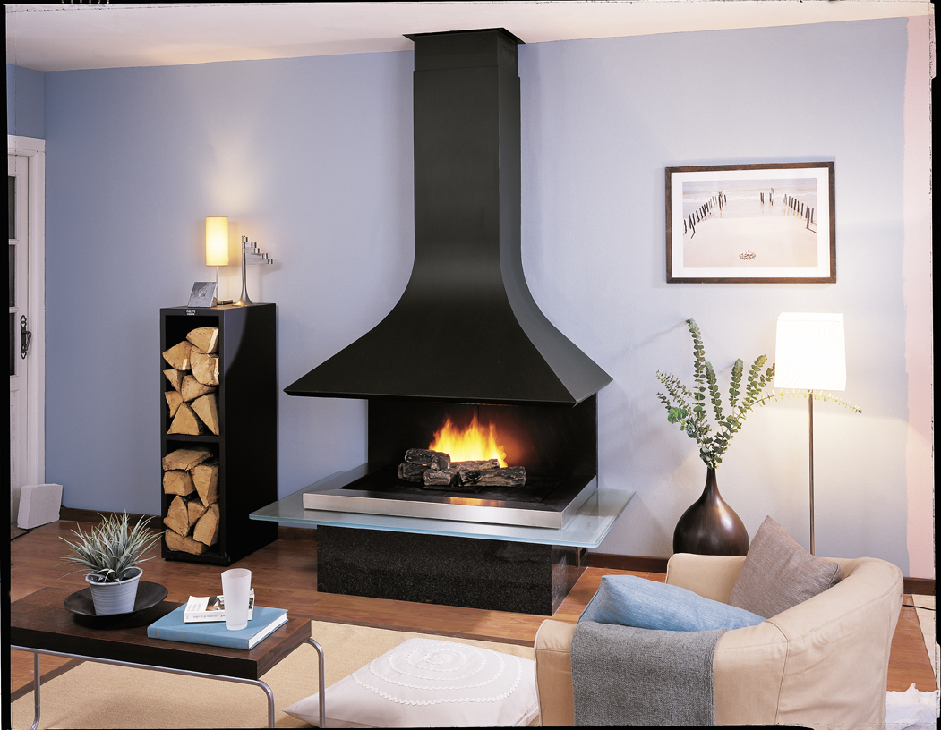 One of the most popular and practical options for the fireplace is the wall. He, as the name implies, is located under the wall. The design of this fireplace is quite practical - it easily connects with the existing chimney and does not take too much space. Wall fireplace is open on three sides and looks very stylish in any interior.