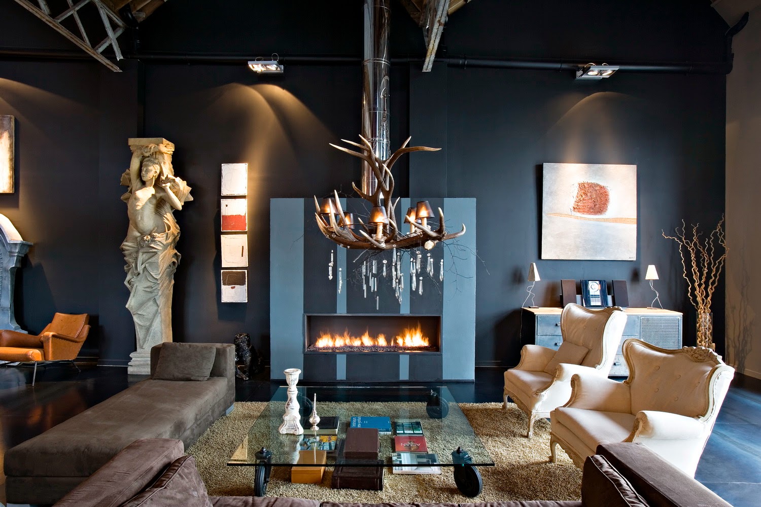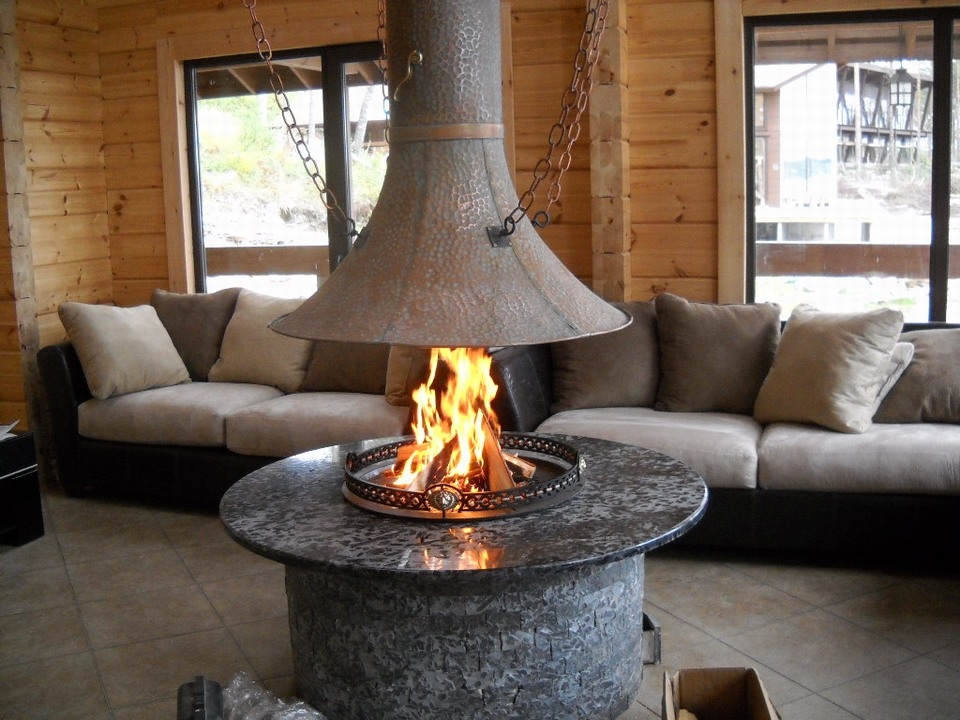Such fireplaces appeared a long time ago. They were present in the medieval castles. Then such fireplaces were used not so much because of their attractive appearance, but for practical reasons.