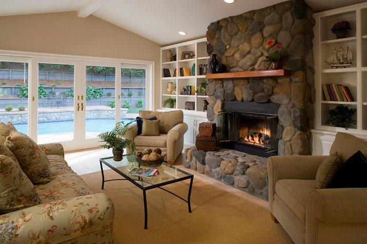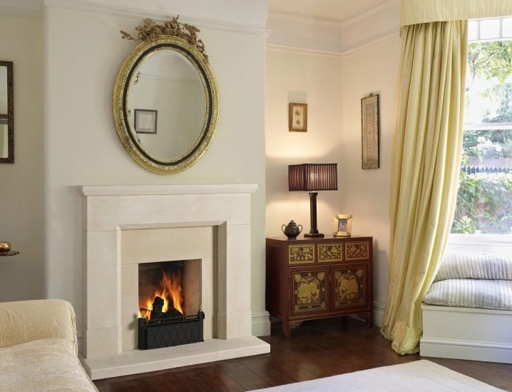 Popular and fireplaces in the English style. They are distinguished by the presence of a small firebox and discreet design. This type of fireplace will perfectly fit into the interior of a small room and a luxurious living room.