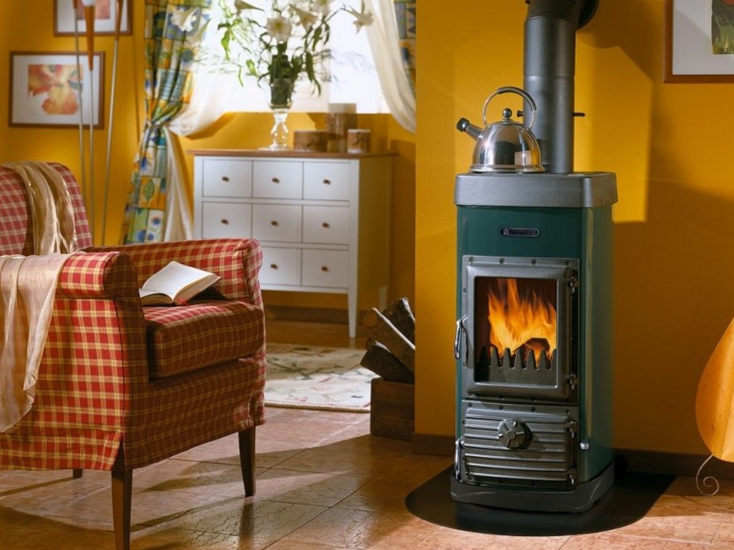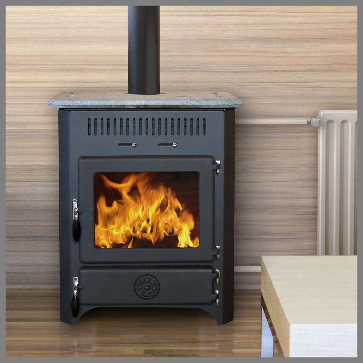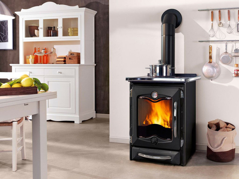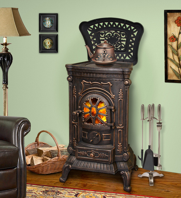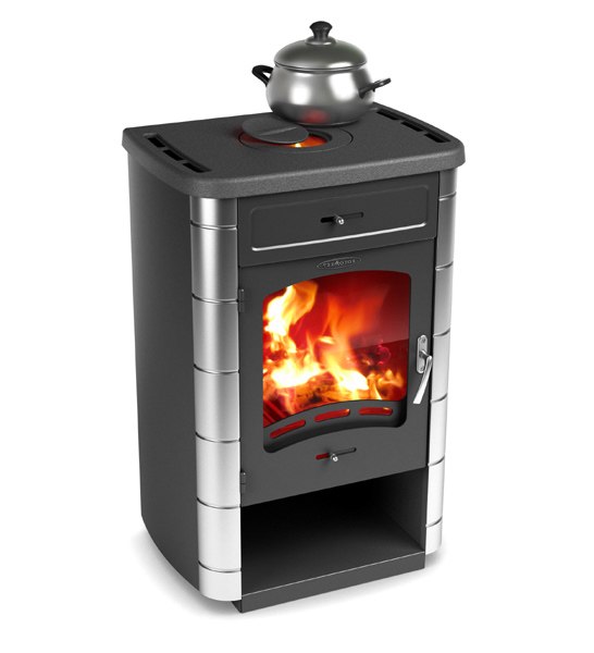 Heating stove-fireplace. They are great even for small rooms, as they are very compact. Their function is room heating. Easily installed and have special compartments for firewood and ash residues.