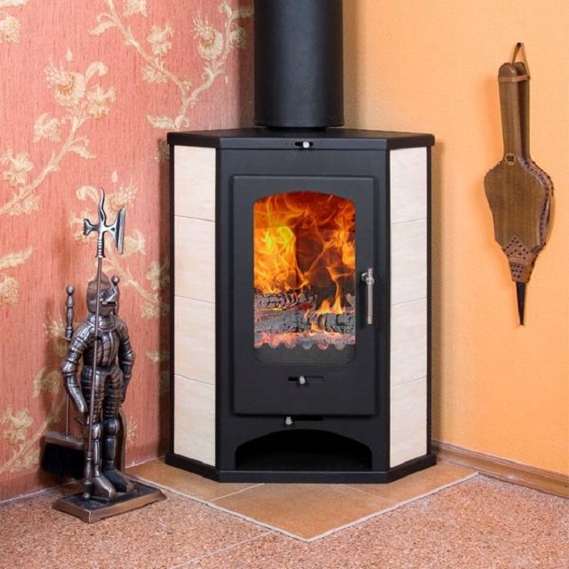 - If there is not much space, then buy a corner unit with a deep firebox. Separate models are decorated with beautiful inserts of ceramic tiles.