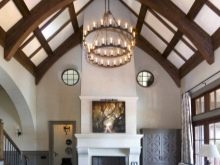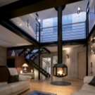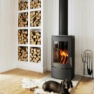 In a room with high ceilings it is possible to install a three-tier fireplace. Each tier carries its own functional load: the lower one serves as a convenient support for the combustion chamber, the firebox itself is placed on the second tier, and in the upper part additional heat-accumulating ceramic rings are placed. This design allows you to keep warm up to 18 hours after the extinction of the flame.