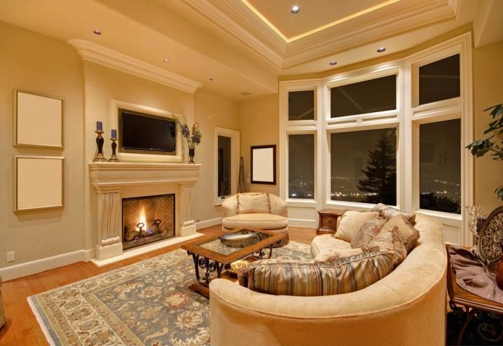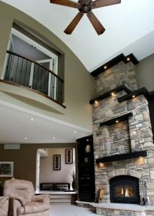 You should also not forget that you can not arrange stretch ceilings directly above the fireplace. When designing a fireplace and selecting a firebox, you need to remember that a fireplace is not only a firebox, but also a firebox (usually for a standard log size), a place for a scoop, and a shelf.