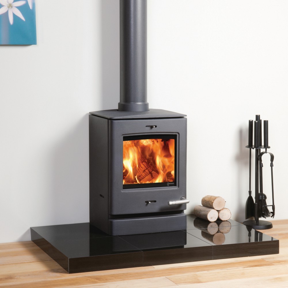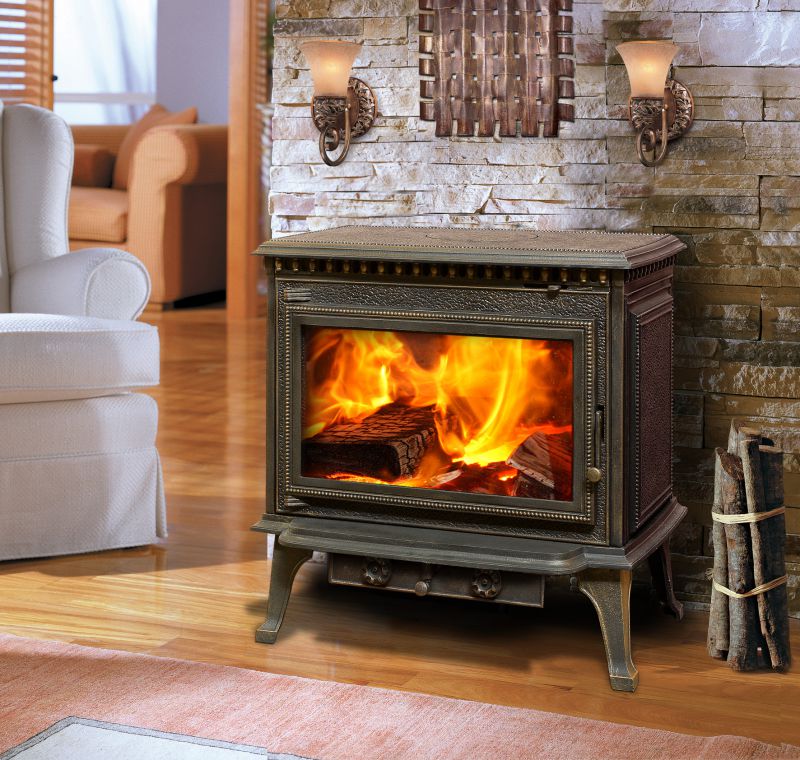 Miniature cast iron fireplace perfectly fit into the interior of a small room or a small house. The device weighing up to 100 kg can be installed not only on the ground floor, but also higher, and in the attic. The corner or built-in model will not take up much space and will not look bulky in a room smaller than 20 sq. M.