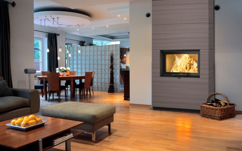 The size of the box should be chosen according to the size of the firebox. An important factor is whether the fireplace was provided for in the project of the house and whether there is a place for it on the floor plan. If space was provided, the choice of firebox and installation are not particularly difficult. If not, it is recommended to consult with qualified installers, who will advise you on installing and choosing a place under the fireplace, at the first stage before choosing a fireplace.