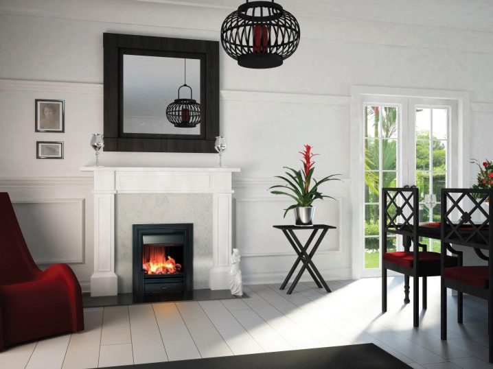 Dimplex electrofireplaces have no analogues in terms of imitation of a living flame. The maximum realistic effect is created due to the evaporation of water in the tank of the steam generator, and the steam is illuminated with halogen lamps. These fireplaces are easy to install and safe to use, for which they are very popular.