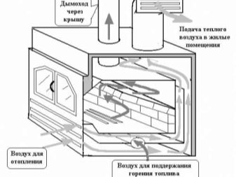 The design of this fireplace allows you to heat the air from the flame. This is facilitated by the presence of channels that are located between the outer walls and the firebox. The pipe that goes through the air is isolated. Warm air enters the room through a special hole. Smoke goes through another channel that has access to the chimney.