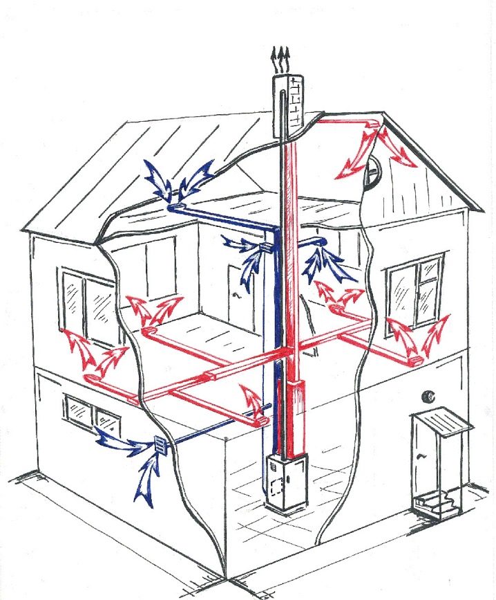 Smoke evacuation channels are involved in the removal of combustion products. They are equipped with any fireplaces. Ventilation routing is the main design in the air heating system. Quality of heating of the room depends on it.