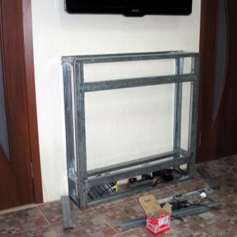 Install a special podium for the imitation fireplace and a metal frame on the floor, the base of which should be sufficiently reliable to withstand the load that the electric fireplace gives it. For this reason, attach the profiles in the base every 200 millimeters.