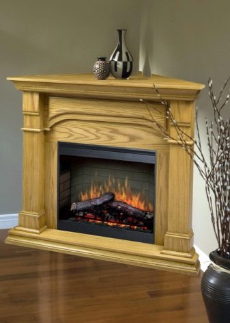 If the room in which you want to install an imitation stove is not large in size, then it’s time to think about installing an angular fireplace.As in small dwellings, the corner is usually not occupied by a place.