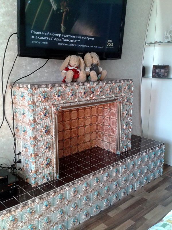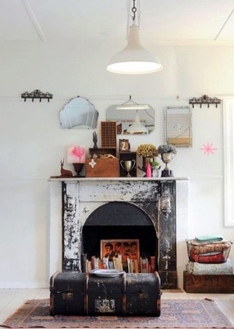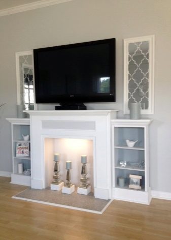 You can use various tricks to give your fake fireplace a more spectacular look. For the fireplace, decorative elements created from plaster, as well as other various objects, can be used. With the original approach, these actions will help you to make a real work of art out of an imitation fireplace.