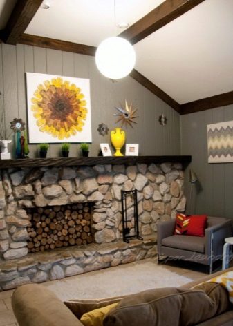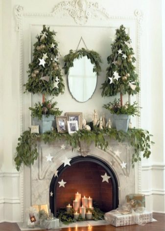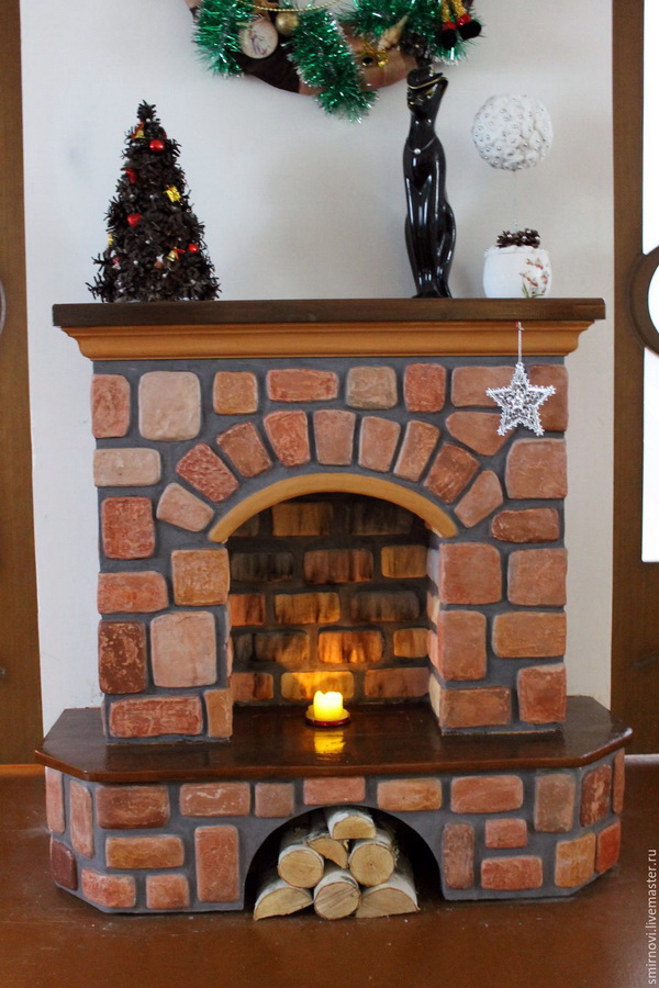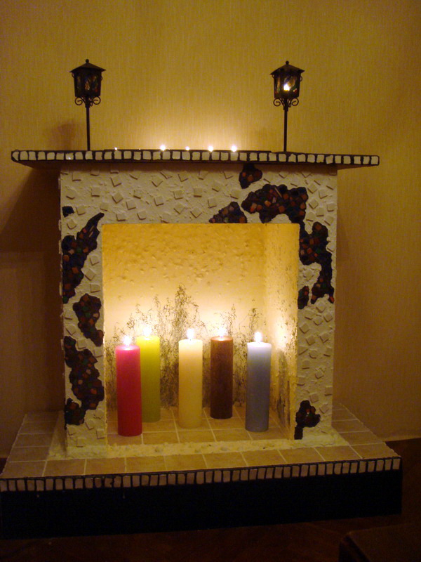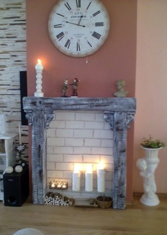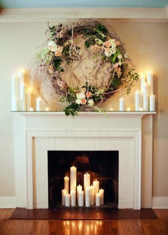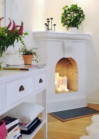 The exterior of the fireplace can be decorated with special natural or artificial building materials, and inside the hearth you can install candles that will create the feeling of a fireplace flame.