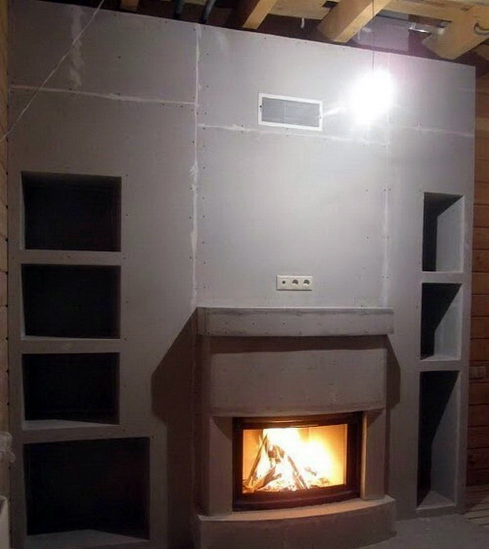 Let's take a look at how to install an electric fireplace in a false fireplace created by you from gypsum board. The wall where the electric fireplace will be located must be sheathed with heat-resistant materials.