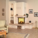 If the corner fireplace on the wood does not suit you, there are electric models. Portals for electric fireplaces can be built by anyone. Initially, you will need to determine the style of the future design, size and location.As a material you can use brick, natural stones, chipboard, drywall and even glass. Do not use plywood and wood, as they deform and crack.