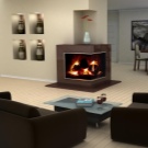 If the main emphasis in the apartment will be given to the fireplace, pay attention to the symmetrical design. Such aggregates are visible from any angle and have the best properties. With the function of heating the room they cope with five plus.