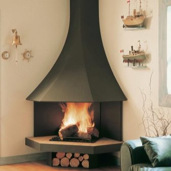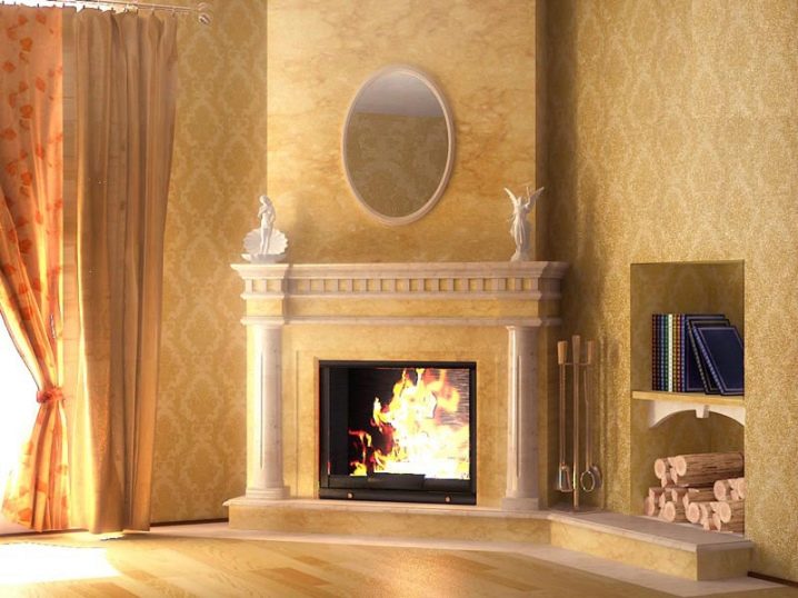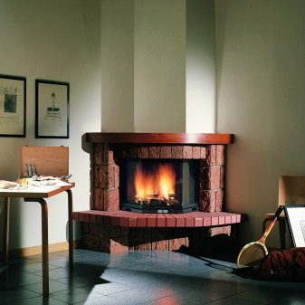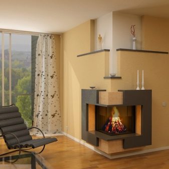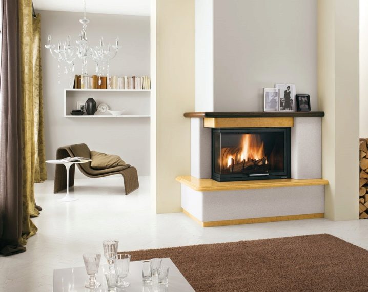 Recently, however, a corner fireplace has spread, which looks original and allows you to save space in a small room.
