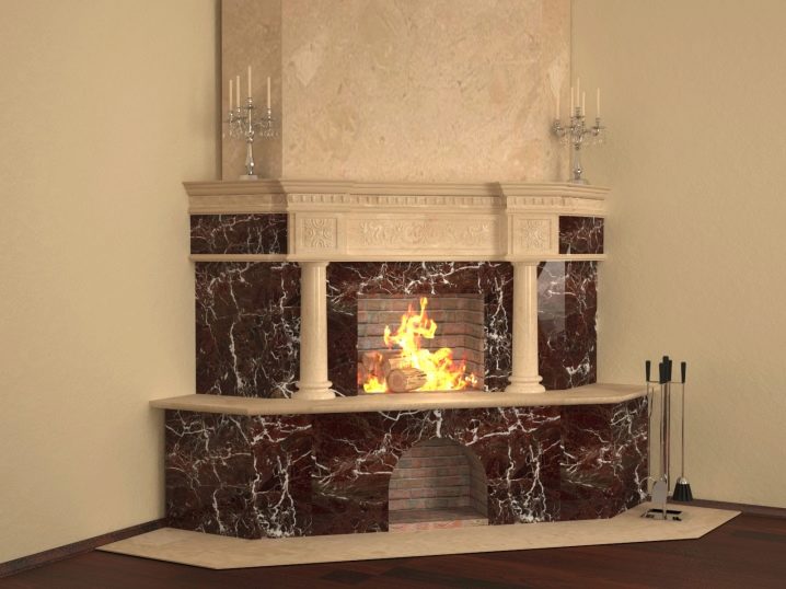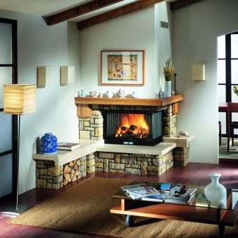 - this type of portal is able to heat several adjoining rooms in a private house or apartment at once, since both walls with which the fireplace comes in contact will be heated;