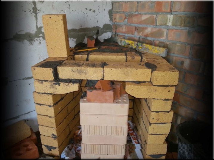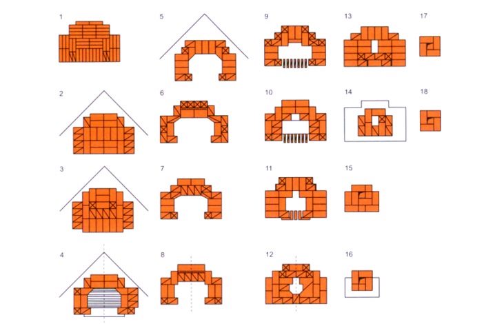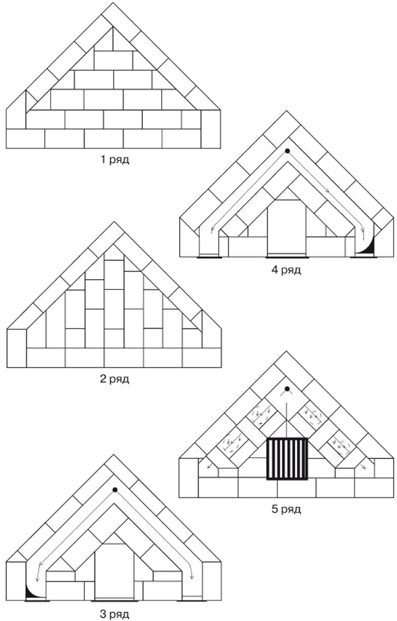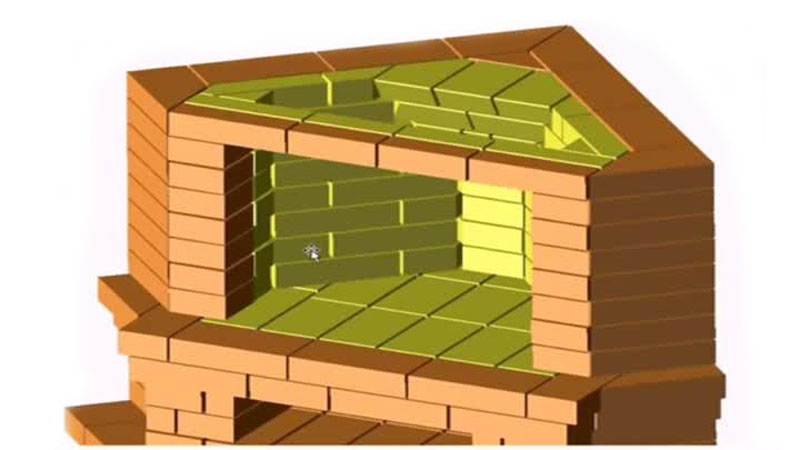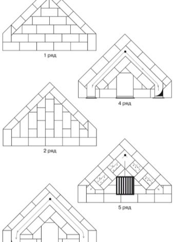 - The following brickwork consists of a fireplace tray and a grate. The fifth row is accompanied by small protrusions of bricks in front, so that there is an opportunity to form a ceiling.