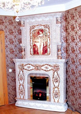 Plaster and stucco suitable for creating bumps and pattern. When working with the portal for an electric fireplace, it all depends on your imagination and wishes. Start with the creation of the frame, after which you can begin to form the walls.